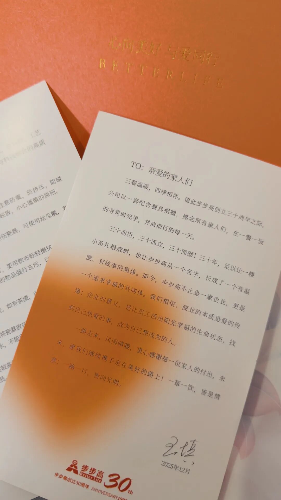 2025年,步步高(002251)迎来而立之岁。12月29日,这份跨越30年的相守与感恩,化作一套满载心意的纪念餐具,送到了每一位步步高家人的手中。大家收到这份沉甸甸的礼物,满心满眼都是欢喜与荣光。步步高30周年礼的派送刚刚开启,未来,步步高各个战线上的伙伴们都将陆陆续续收到这份专属的美好礼物。
